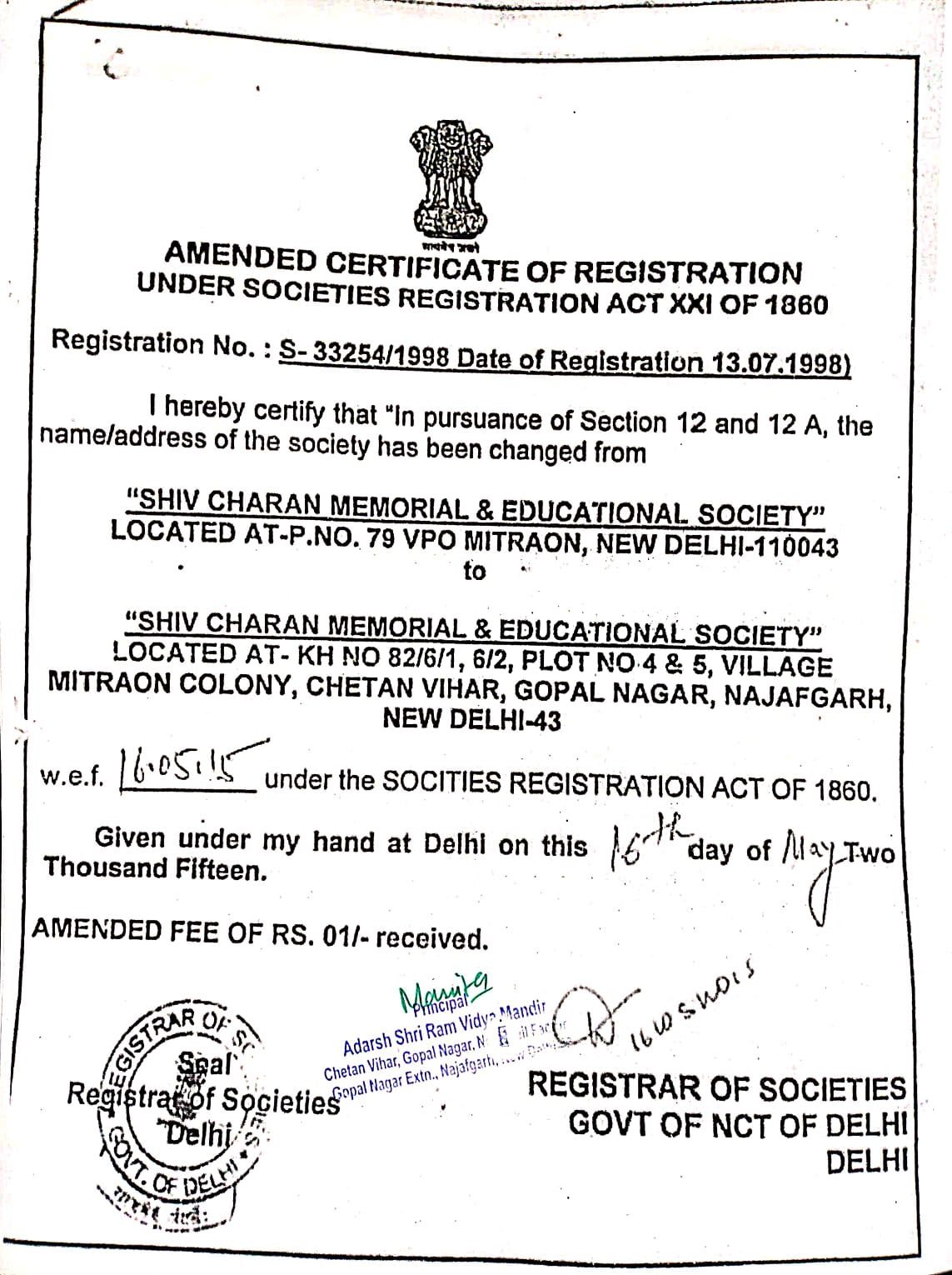 School Certificates Affiliation Upgradation to Senior Sec. Society Registration Self Certification Performa Health Certificate Structural Stability Water Harvesting Fire Safety Drinking Water Sample Test Fee Structure PTA Committee SMC NOC for Land Certificate